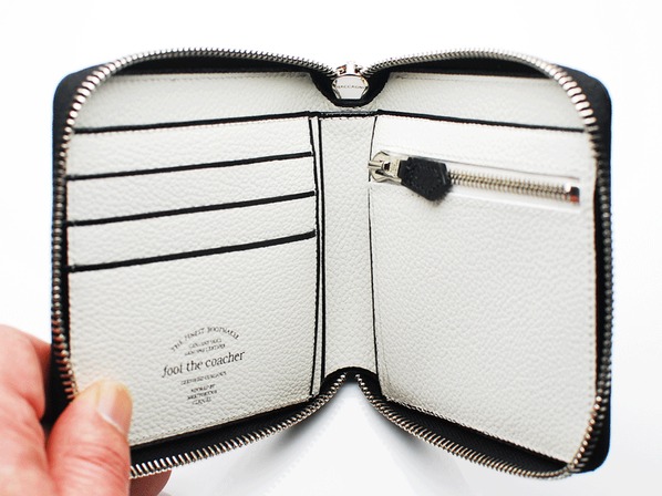 ◆内装はホワイトでジップはシルバー、カードスロット5口、小銭入れ付き。