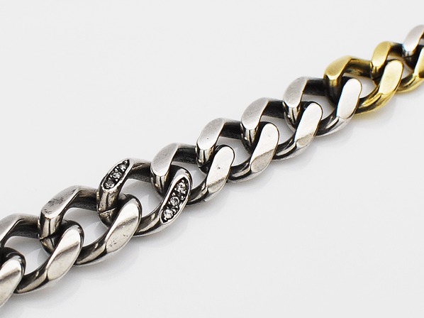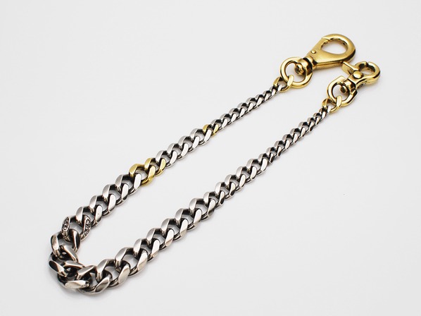 ◆ミックスカラーでグラデーションに組まれたCavalry Chain(騎兵チェーン)のウオレットチェーンで、Swarovskiが怪しく輝きます。