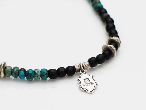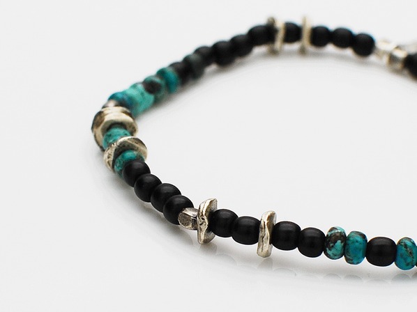◆水牛の角を丸く磨き上げたビーズとターコイズで組み上げたゴムブレスレット。