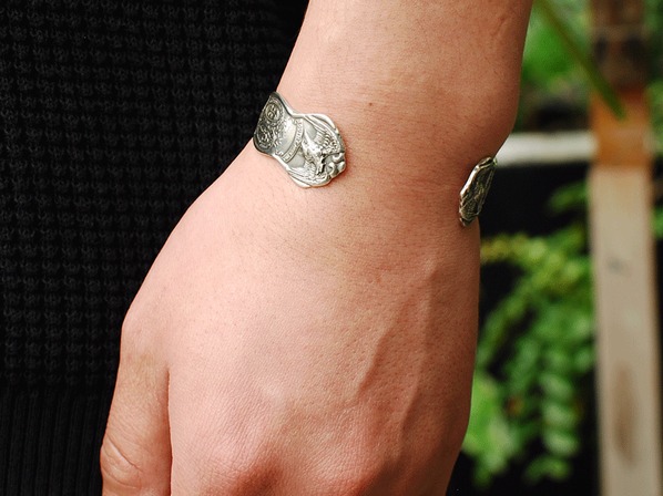 ◆ヴィンテージスーベニアスプーンを2本ジョイントしたシルバー925製バングル。