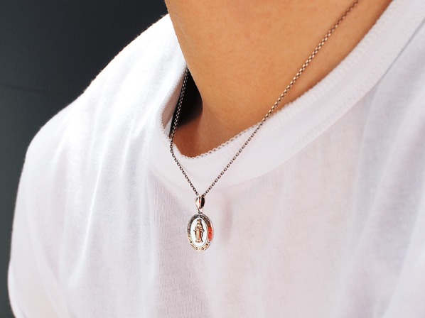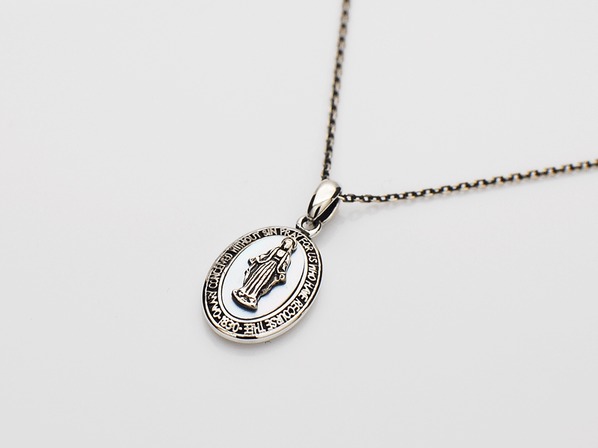 ◆白蝶貝を削り出しマリアを中央にセッティングしたネックレスです。