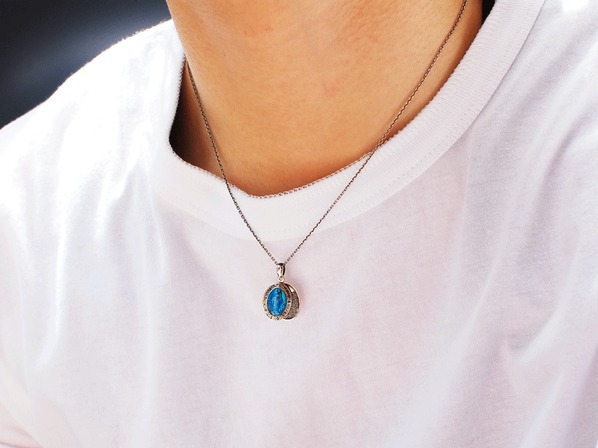 Small Mary Necklace-Blue Epoxy-
