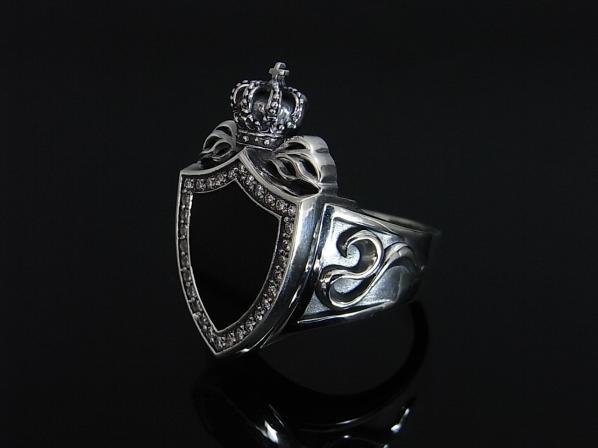 ◆シールドとクラウンをモチーフにブラックオニキスを施したリングです。