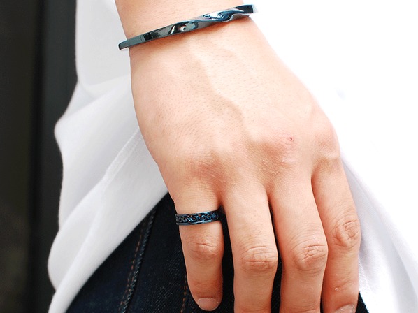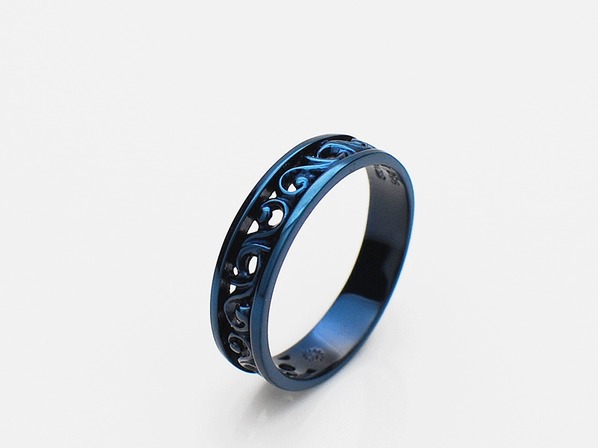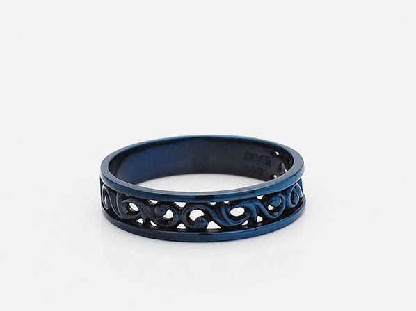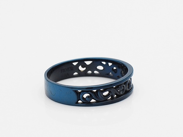◆ブルーチタンを施したスクロールデザイン(唐草模様)のリング。