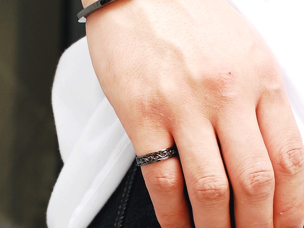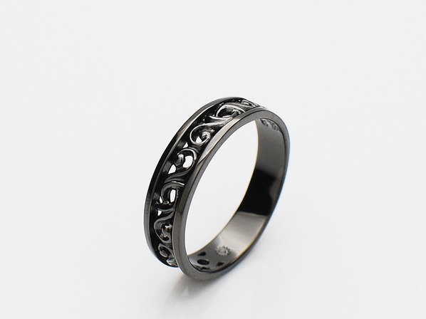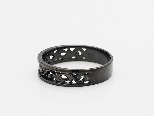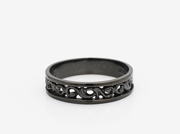 ◆ブラックチタンを施したスクロールデザイン(唐草模様)のリング。