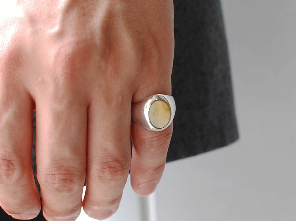 ◆バッファローの角を磨き上げ印台デザインに落とし込んだシンプルかつ上品なリングです。