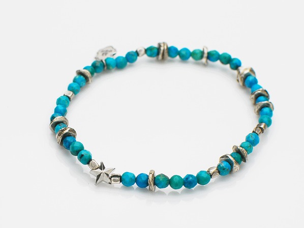 ◆スタービーズとシルバークレストチャーム、ターコイズを施し定番ビーズを一新したアイテムとなります。