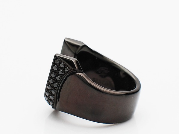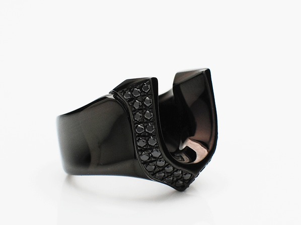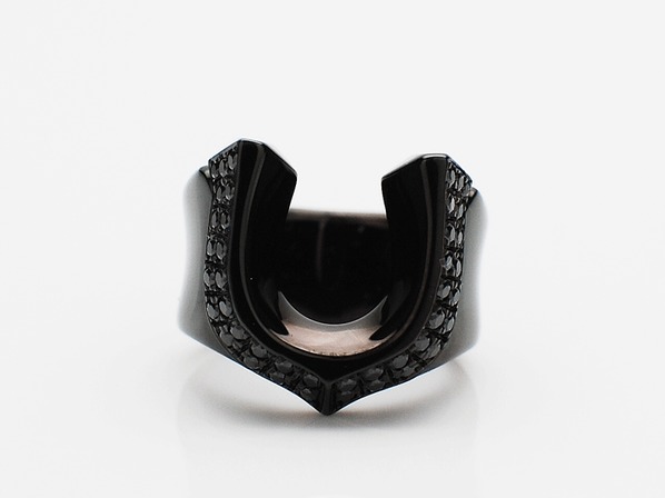 ◆ホースシュー部分にブラックジルコニアをセッティングし、ブラックコーティングを施したシックな仕上がり。
