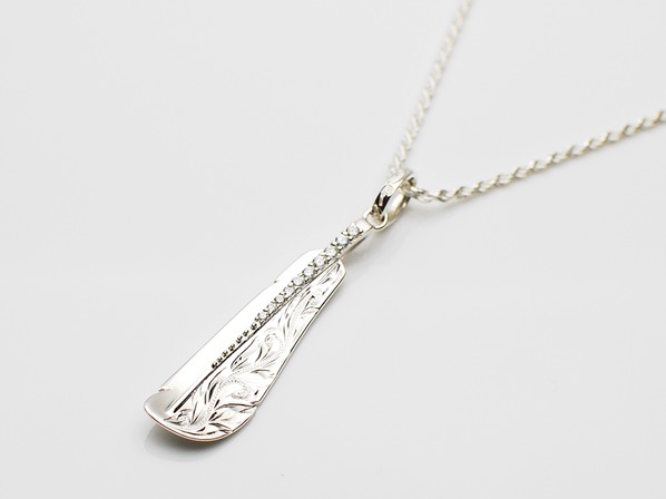 ◆輝かしい未来へと導くといわれるPUEO(フクロウ)の羽をモチーフにしたペンダントで、力を押し寄せる波と、永遠の絆を意味するマイレの葉が彫られています。