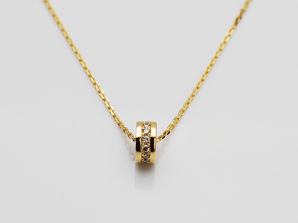 ◆ダイヤモンドが一周セットされたK18イエローゴールド製のホイールペンダントです。