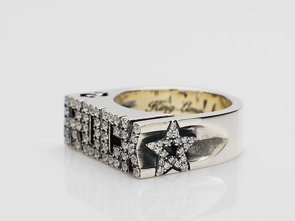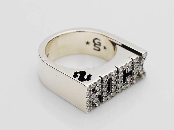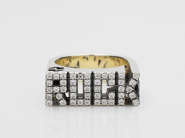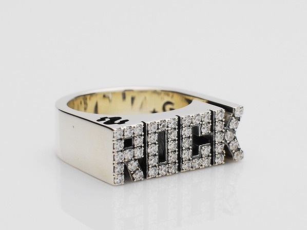 ◆リングの上面から抜けているドルマークは、ロックスター=金という意味を皮肉っています。