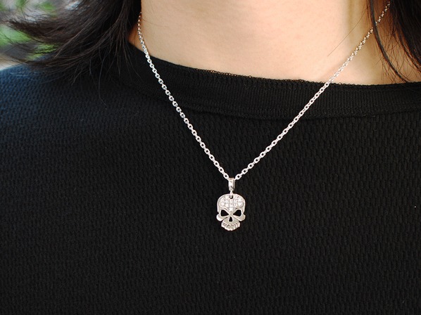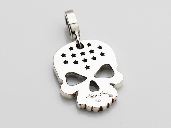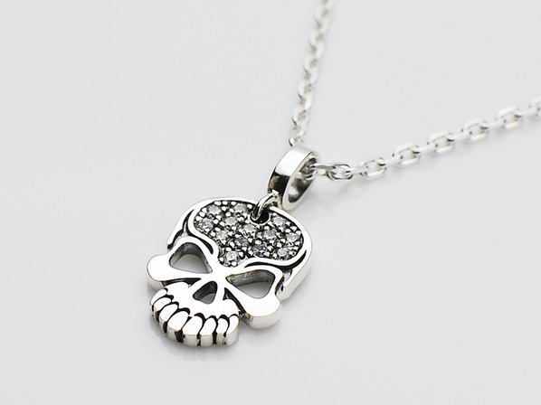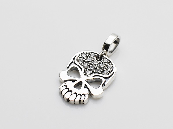 ◆エッジの効いた平面で構成されたスカルペンダントで、額にはキュービックを13石セッティングしております。