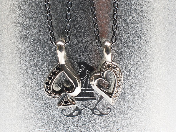 ◆メンズにはスペード、レディースにはハートのデザインのトップですが、よく見るとスペードのトップの中にハートが隠れています!まるで男性が女性を包み込むかのように。。。モチーフは別々ですが、デザインでさりげなく2人を繋ぐロマンティックなアイテムとなっております。