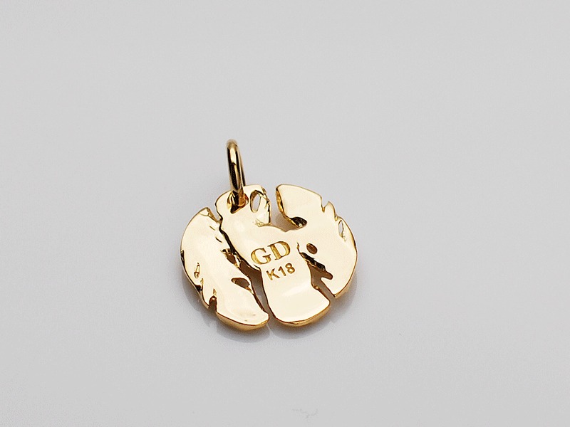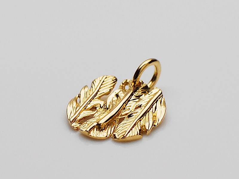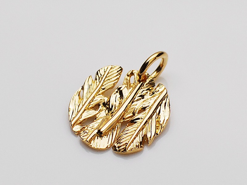 ◆3枚のフェザーで表現したコイン型のK18イエローゴールドペンダントです。