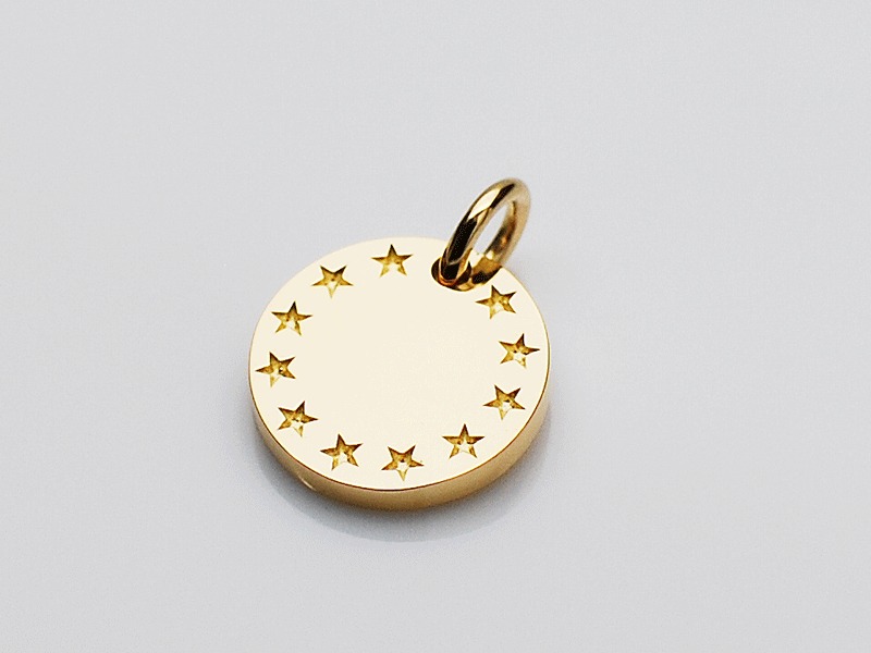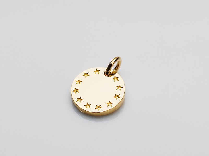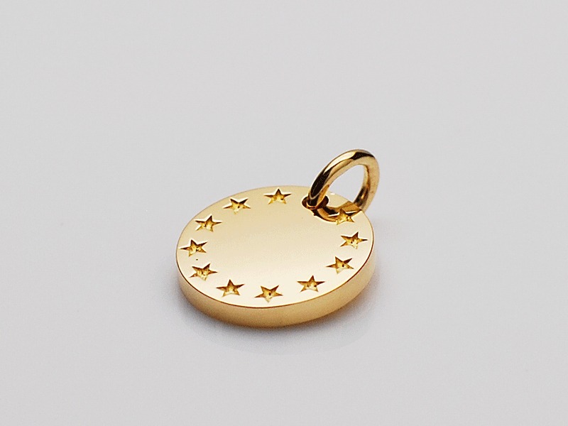◆エッジの効いたスターをコイン型に落とし込んだK18イエローゴールドペンダントです。