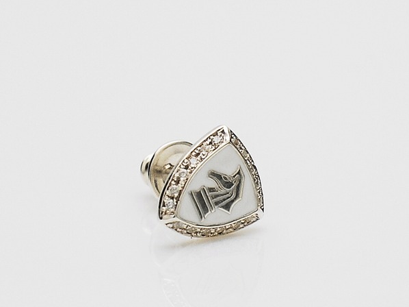 ◆プエルタ・デル・ソルのアイコン『ナイト』をシールドに落とし込みホワイトのエポキシが施されたピアスです。