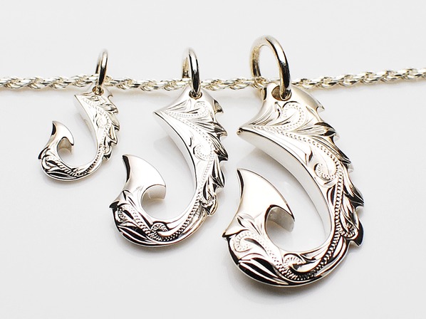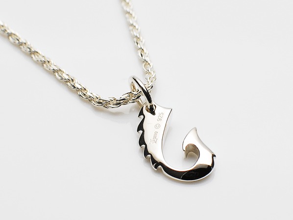 ◆幸運を釣り上げてくれるフィッシュフック。昔からサーファーがお守りとして身に着けていて、彫り模様には神が宿るといわれている”キノ・ラウ”を落とし込んだデザインです。