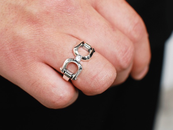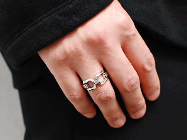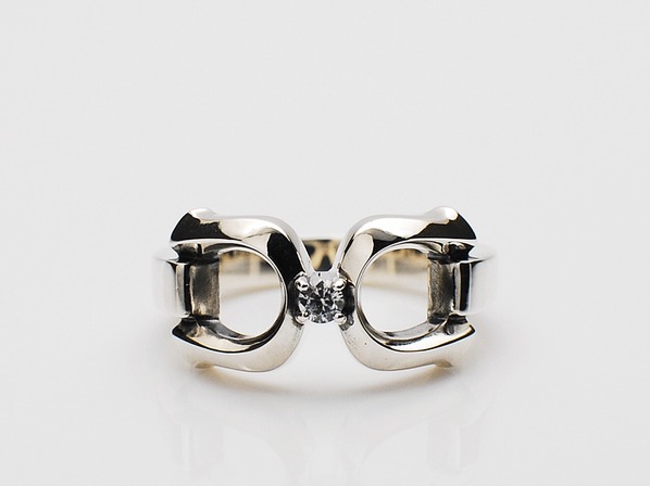 ◆ビットとよばれる馬具の『はみ(馬の口にくわえさせるクツワの一部分)』をかたどった金具をイメージし、シンメトリーなフォルムで表現したホースシューリングとなります。