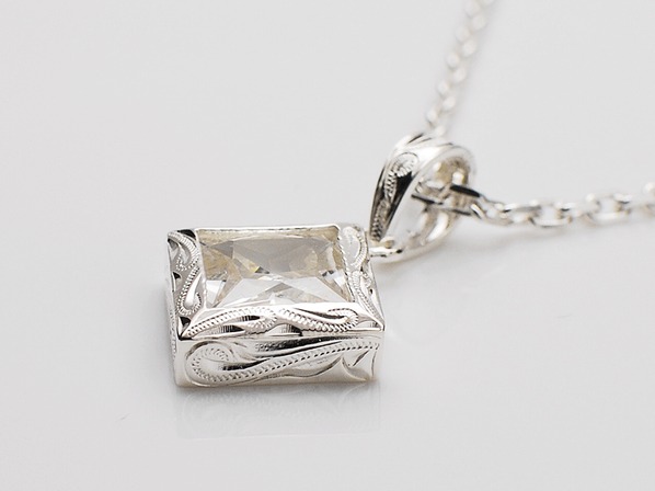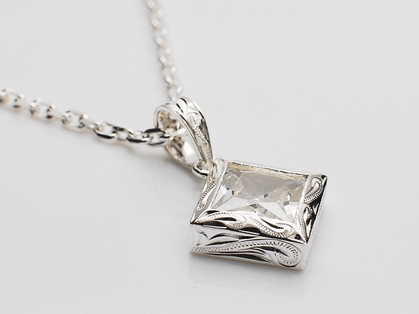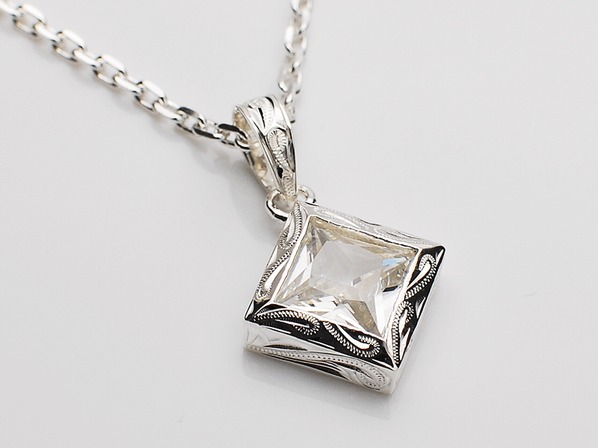 ◆永遠に続く幸せを意味する『スクロール(波)』が刻まれたスクエアペンダントです。