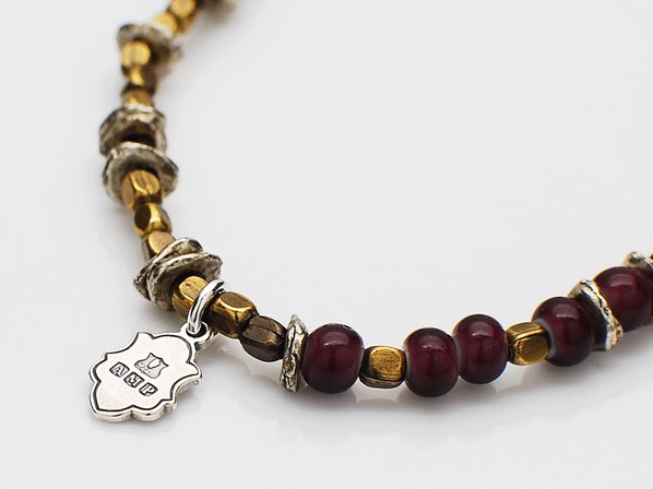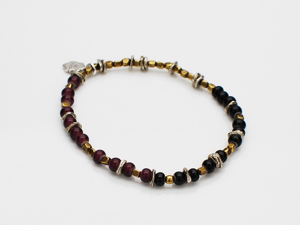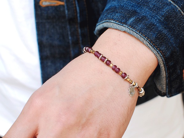 ◆トレンドに左右されないシンプルでいてひねりの効いたビーズブレスレットはタイムレスに、カジュアルなスタイリングにベストマッチします。