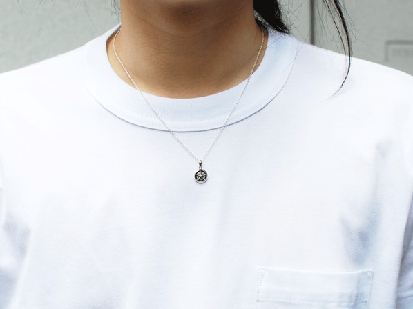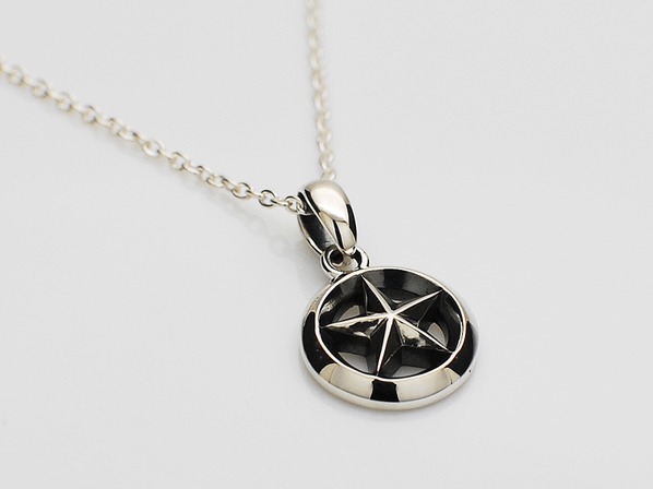 ◆トライアングルワイヤー(▲状の銀線)を使用し、燻し加工により濃淡をつけることでエッジが効いたモダンな雰囲気を持ちあわせたスターネックレスとなります。