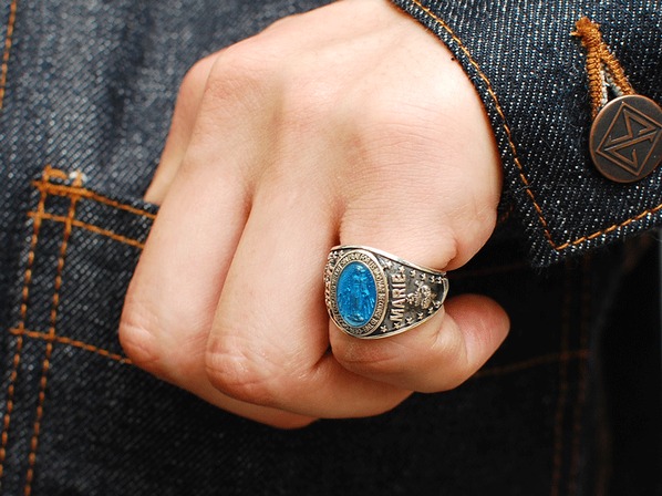 ◆カレッジリングスタイルのシルバー925製マリアリングで、トップにはブルーのエポキシを施しております。