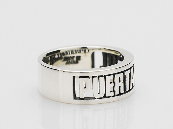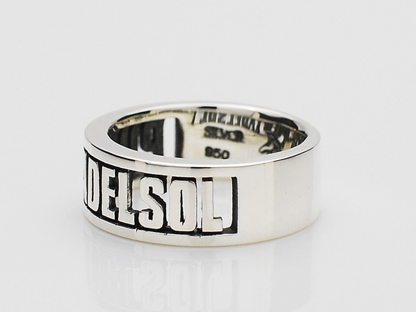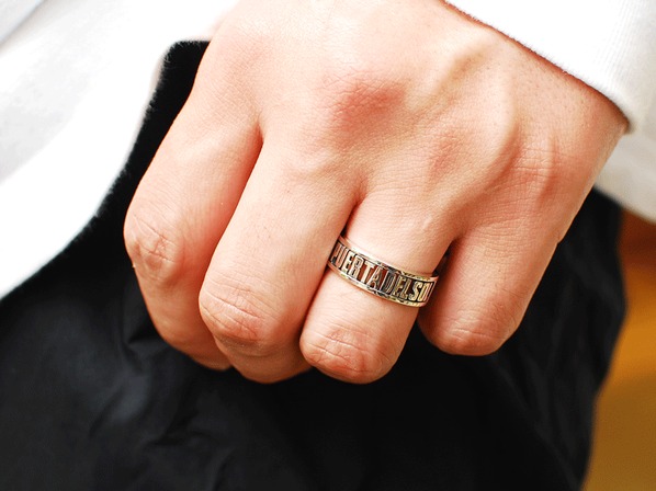 ◆ブランドネームをタイポグラフィー化したリングで、ネームが立体的に浮かび上がるような仕上がりとなっています。