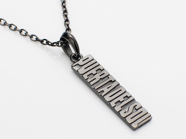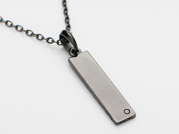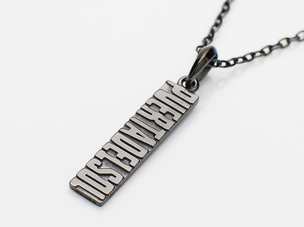 ◆ブランドネームをタイポグラフィー化したプレートネックレスで、ネームが立体的に浮かび上がるような仕上がりとなっています。