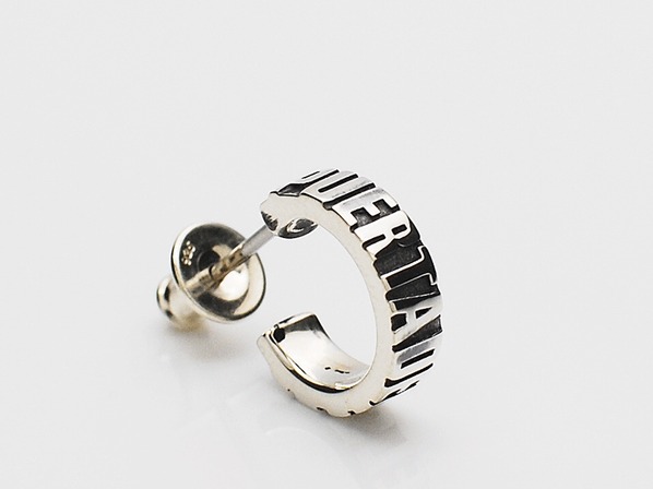 ◆ブランドネームをタイポグラフィー化したフープピアスで、ネームが立体的に浮かび上がるような仕上がりとなっています。