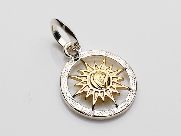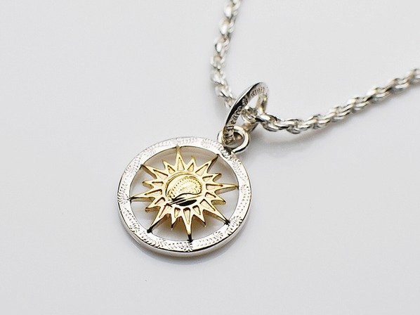 ◆輝かしい未来を明るく照らしてくれるSUN(太陽)をデザインしたペンダントで、彫り模様には永遠に続く幸せを意味するスクロール(波)が刻まれています。