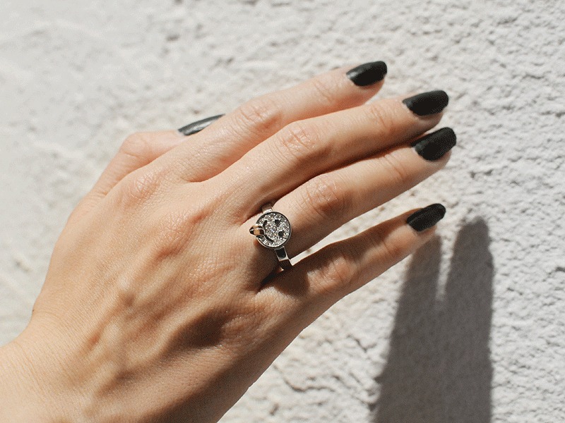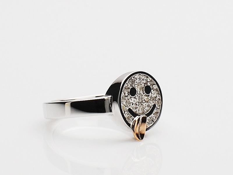◆舌を出したユーモアのあるスマイルデザインのリングです。
