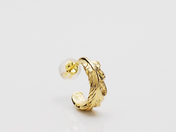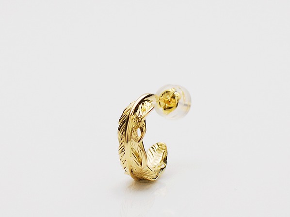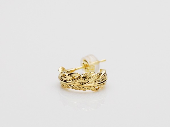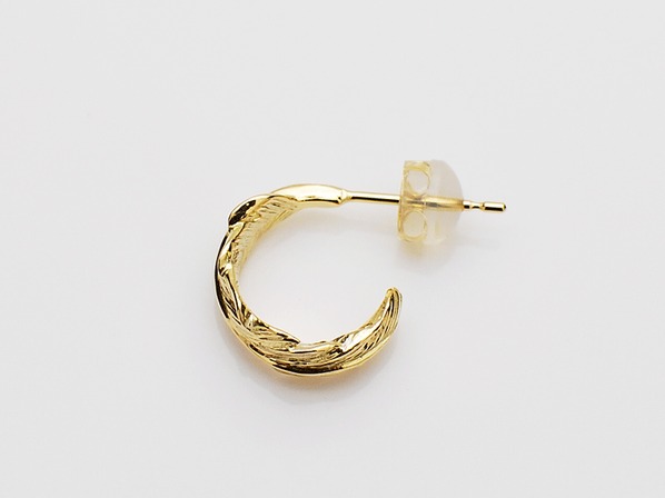 ◆筋一本一本描かれた、K18イエローゴールド製のフープ型のフェザーピアスです。