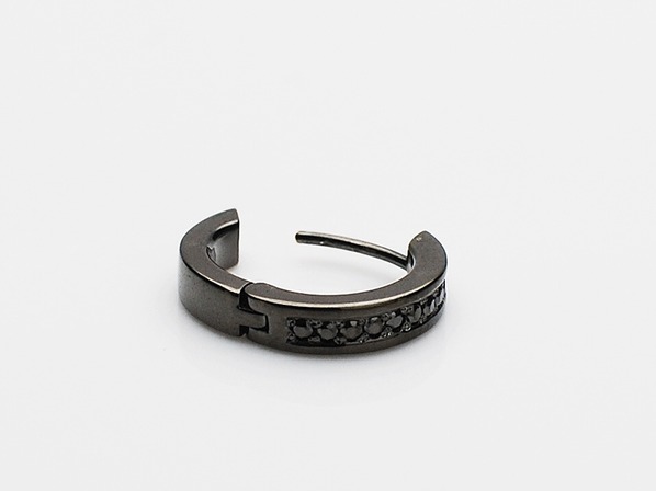 ◆エッジの効いたフォルムにジルコニアを施したフープタイプのピアスで、ブラックチタンをコーティングしております。