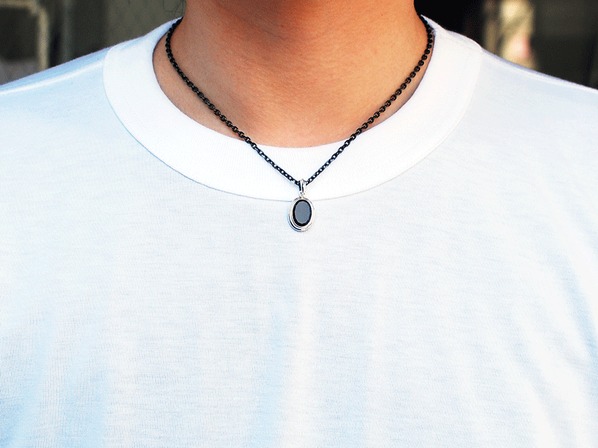 ◆オニキスをセットしたオーバルタイプのペンダントで、ベーシックで立体的なフォルムはシーンやスタイルを選ばず着用頂けます。