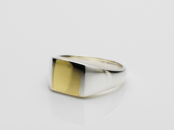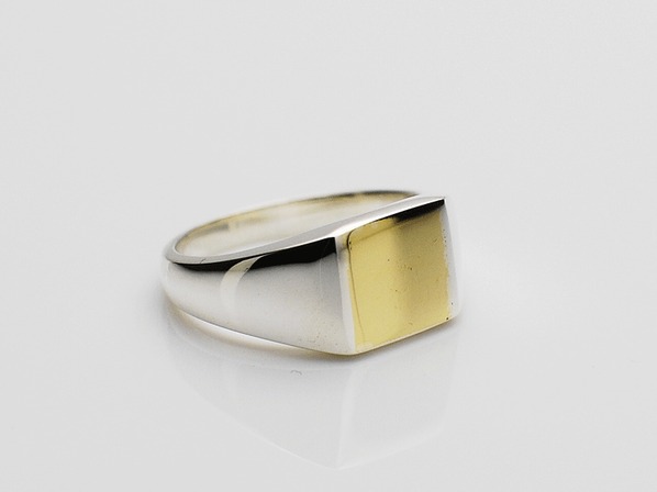 ◆Brass(真鍮)を別パーツで作成し、覆輪留めした印台デザインのピンキーリングとなります。