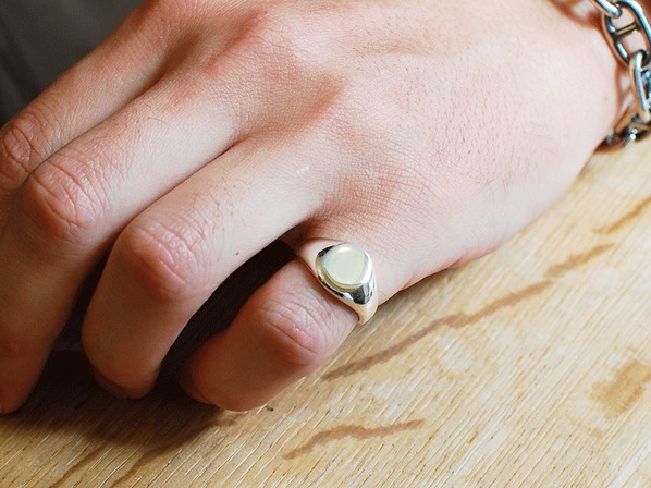 ◆Brass(真鍮)を別パーツで作成し、覆輪留めした印台デザインのピンキーリングとなります。