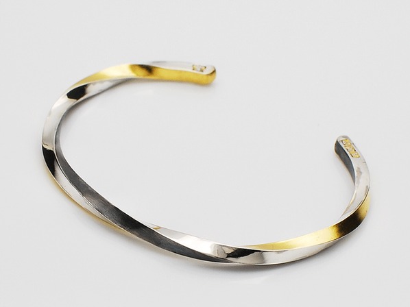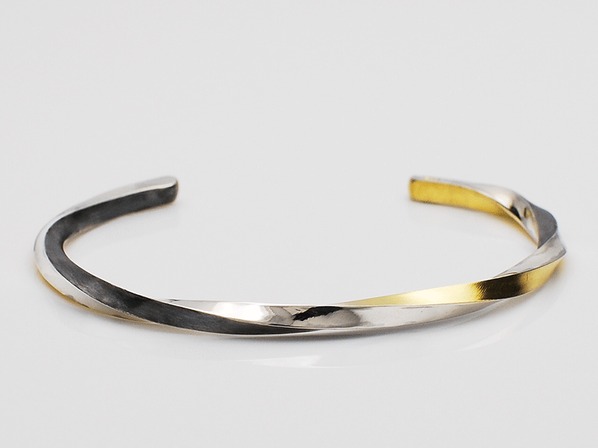 ◆金、銀、黒に色分けされた4,0mmの銀角線をうねるようにねじり上げたツイストバングルで、アンプジャパンを代表するデザイン、フォルムです。