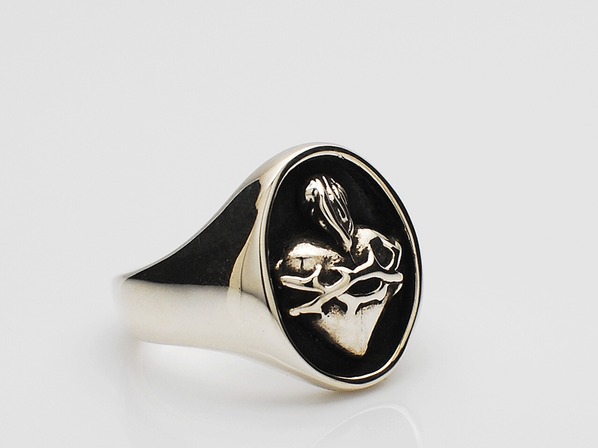 ◆ハートにイバラが巻きついた重厚感のある印台デザインのリングです。