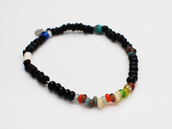◆こちらは不揃いなマットブラックと磨かれたブラックオブシディアンのコントラストが美しいゴムアンクレットで着脱も容易です。