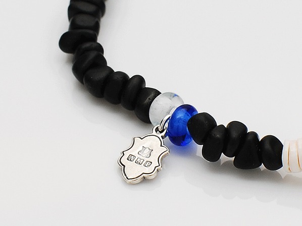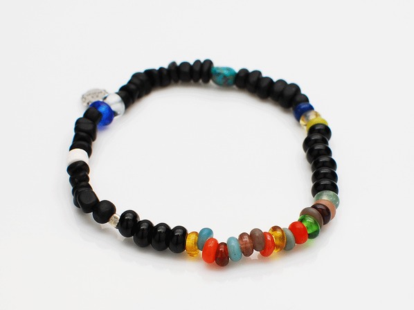 ◆こちらは不揃いなマットブラックと磨かれたブラックオブシディアンのコントラストが美しいゴムブレスレットで着脱も容易です。