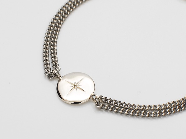◆こちらは中央にダイヤモンドを彫り留めしたシルバー925製のチャームで、ブレスレット用、アンクレット用と3サイズから選べる調節可能なステンレスチェーンを採用。