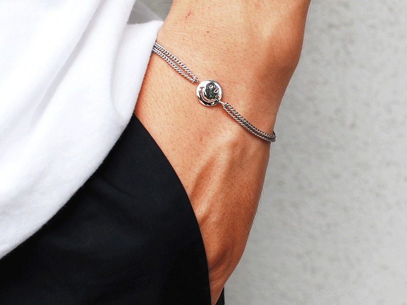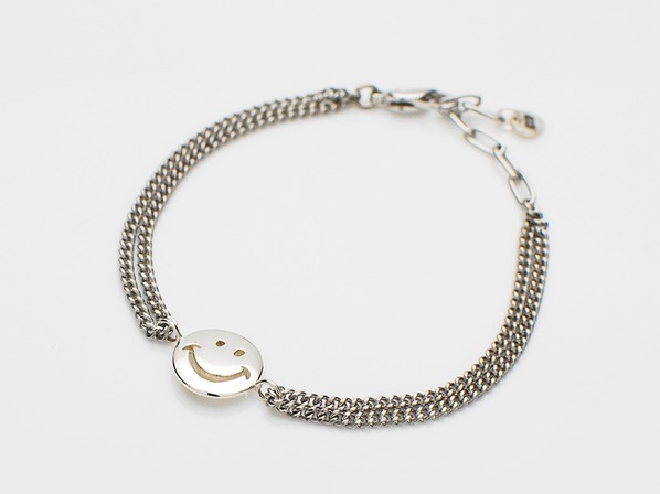 ◆こちらはカットアウトしたシルバー925製のスマイリーチャームで、ブレスレット用、アンクレット用と3サイズから選べる調節可能なステンレスチェーンを採用。