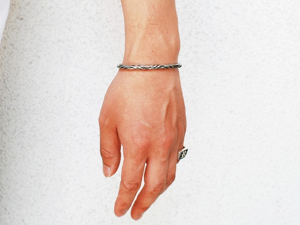 ◆こちらは何本ものシルバーが巻きつきねじり合ったかのようなシルバー925製のツイストバングル。