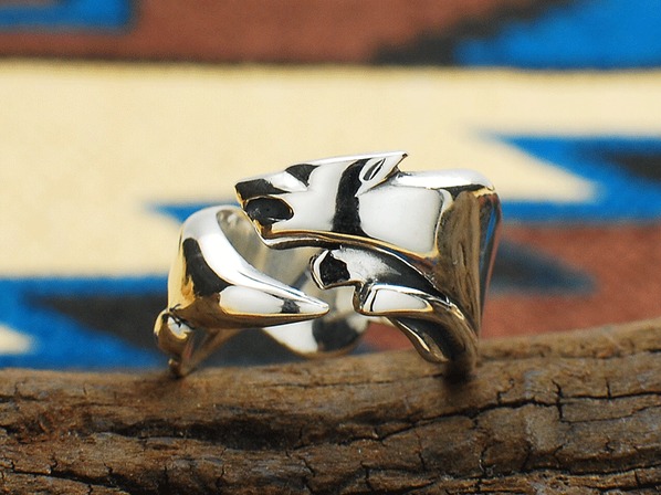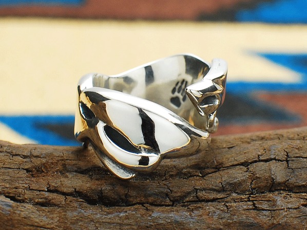 ◆知識、精通、経験などから得た情報を意味するジャンピング・ウルフのリング。