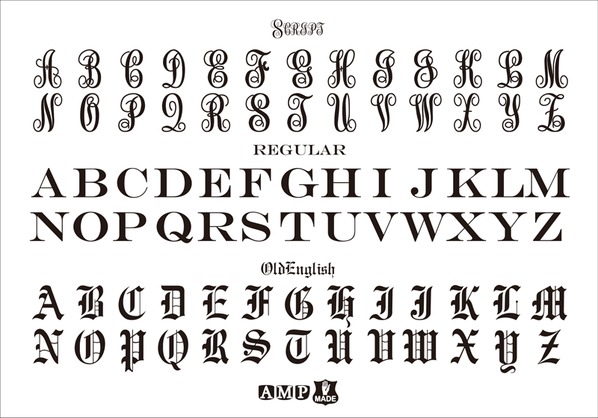 ◆書体は『SCRIPT』『REGULAR』『OLD ENGLISH』の3書体よりお選び頂けます。