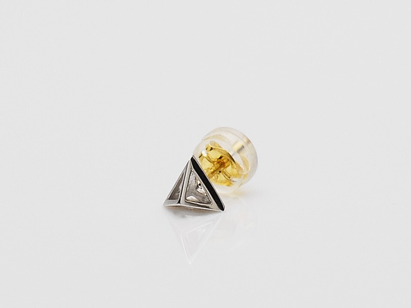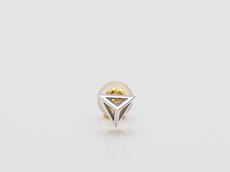 ◆トライアングル型のスタッズに透かしを施した軽快な印象のピアスです。