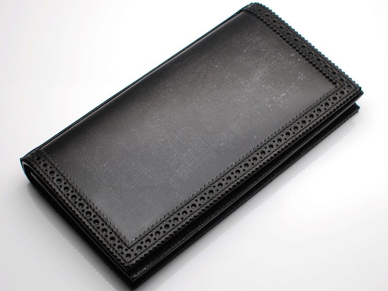 ◆イギリス製ブライドルレザーを使用し、ブローグをあしらった中折れタイプのウォレット。