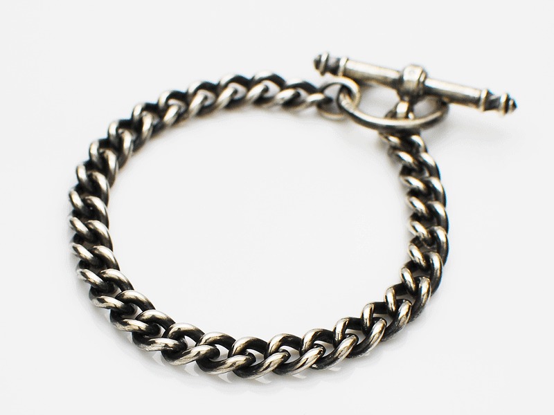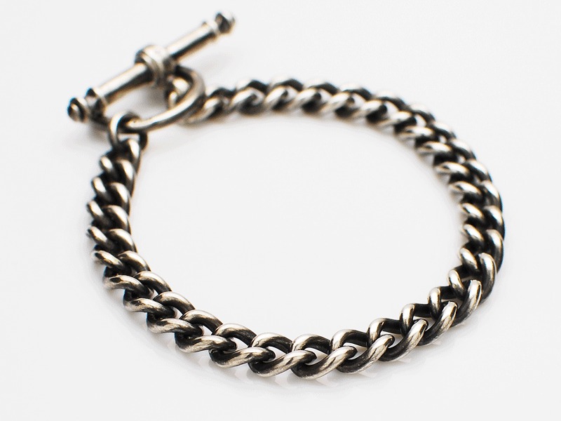 ◆着けやすい太さの喜平チェーンブレスレットで、強めの燻し加工を施し存在感のあるフォルムが特徴です。