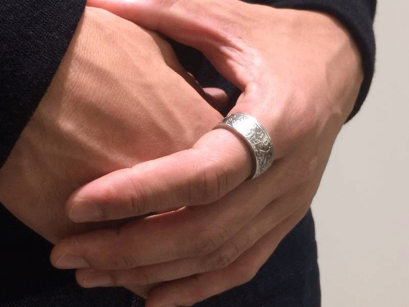 ◆着け心地、ボリューム、重量ともに満足のいく、歴史あるコインを指元に。