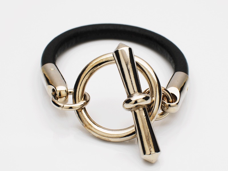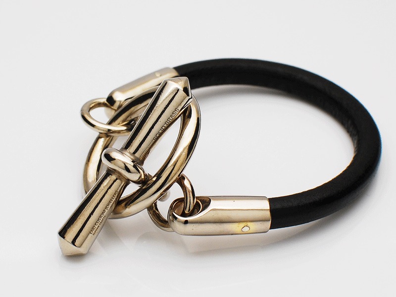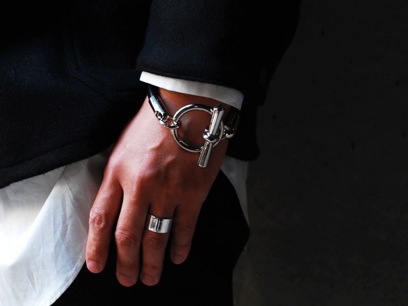 ◆太めのブラックレザーとボリュームのあるサークルが特徴的な、ENDらしいモード感漂うブレスレットです。